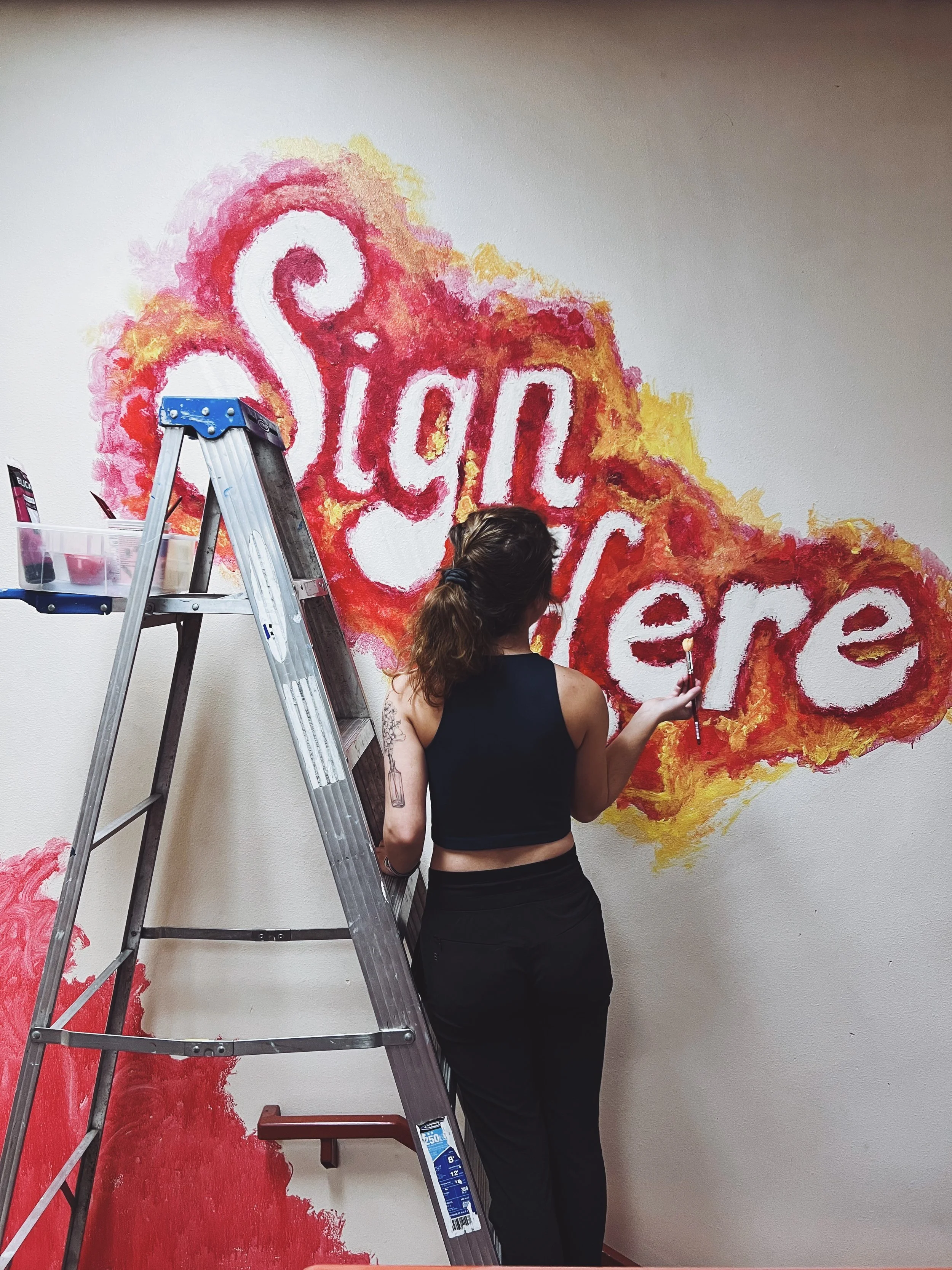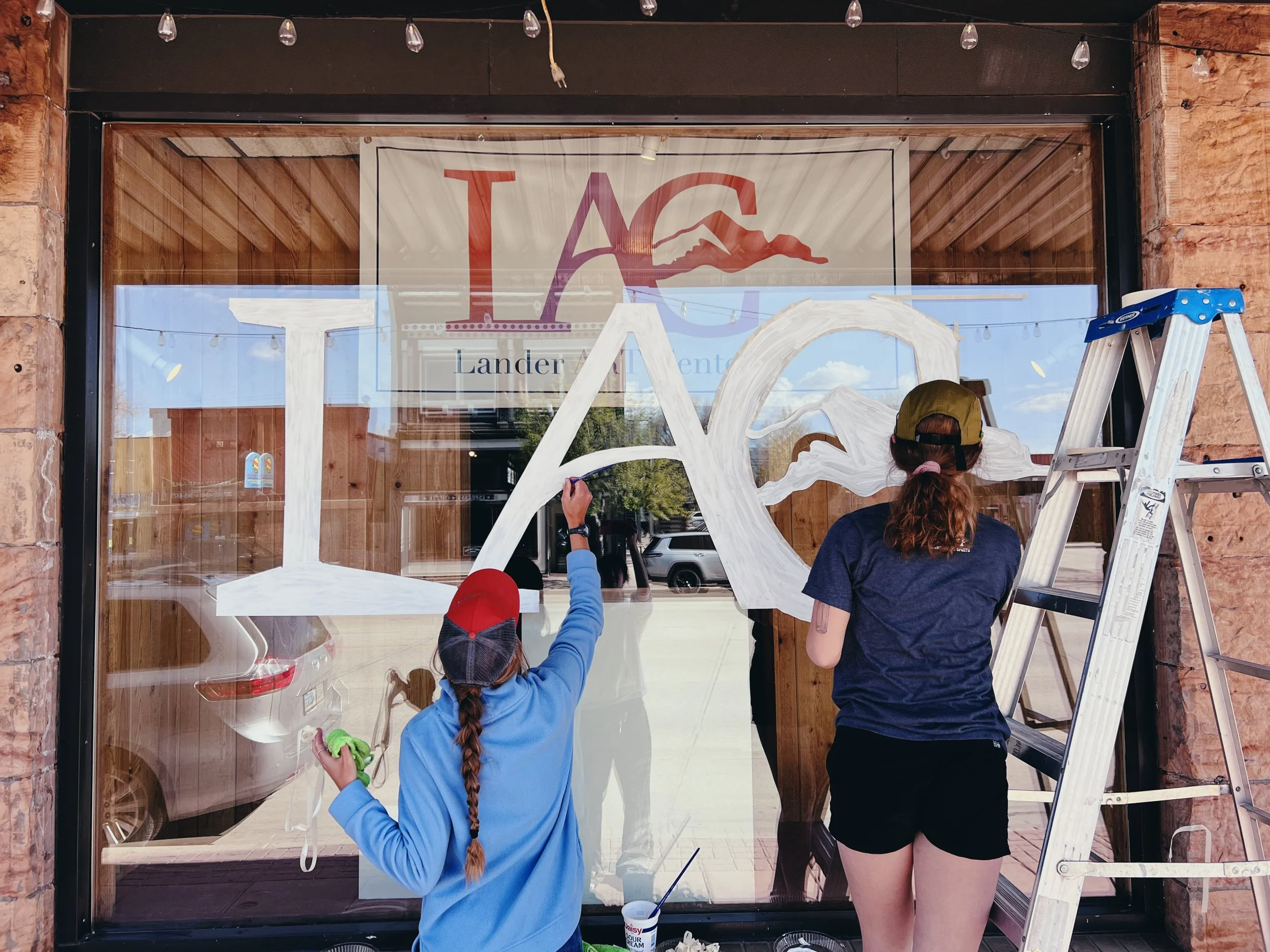 local artists and LAC volunteers Alice Stoff and Autumn Hnilicka keeping the LAC spaces fresh and fun!