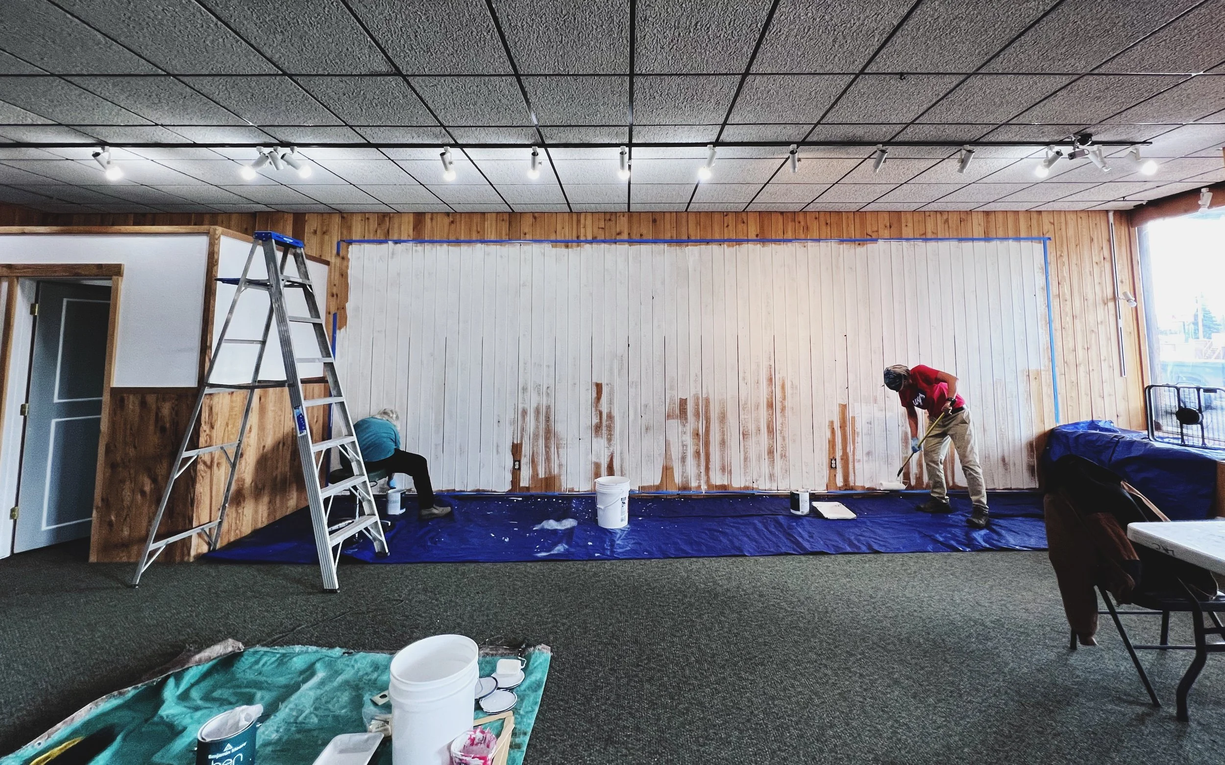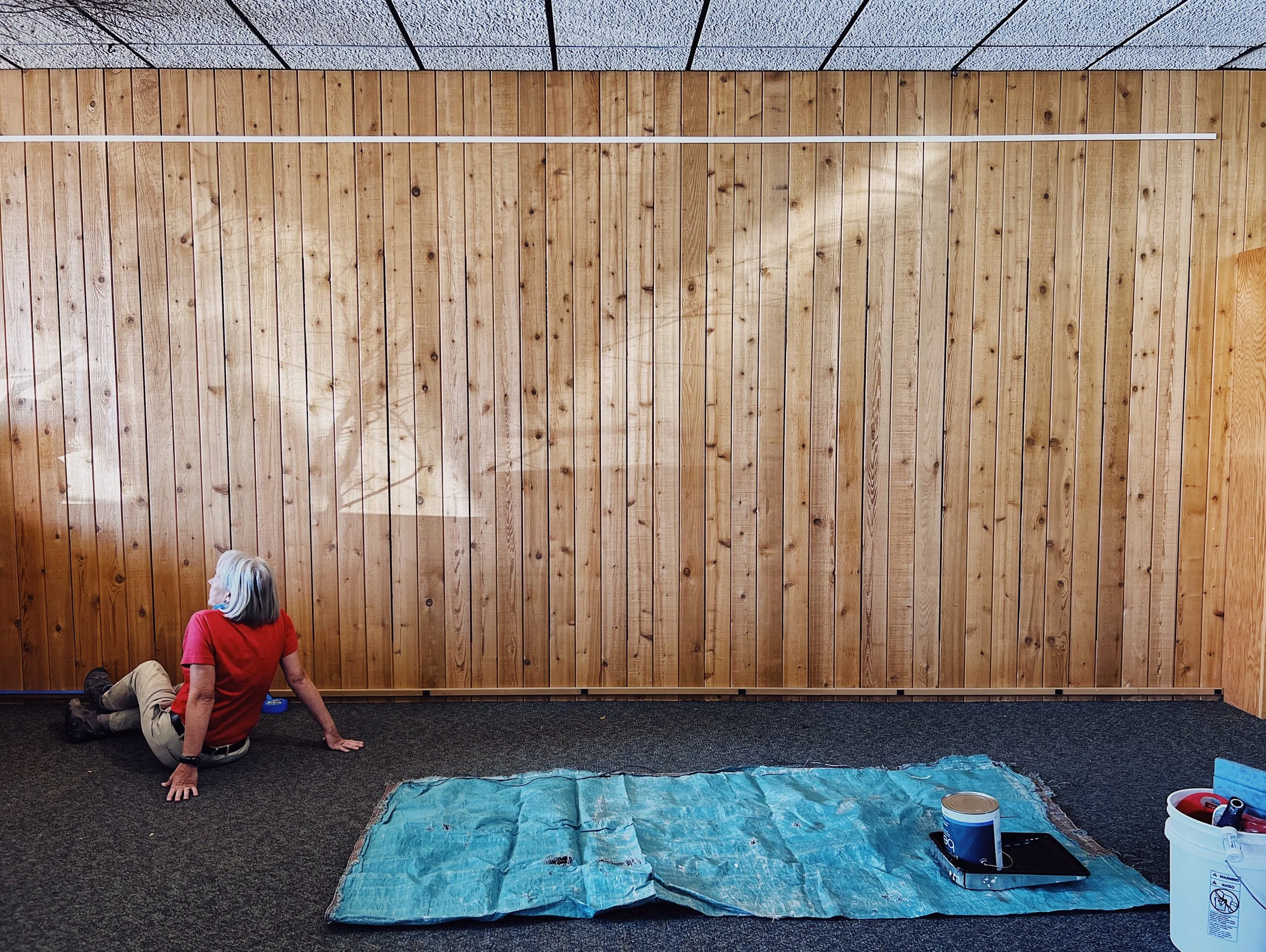 Volunteer and LAC board member, Laura Koch gives the LAC gallery walls a facelift.